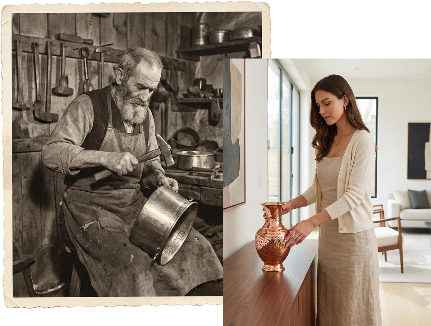 Dededen miras kalan zanaatı, modern çizgilerle harmanlıyor. Hüseyin Usta, her bir eserde eski usul ustalığı çağdaş tasarımla buluşturarak, bakırın hikayesini yeniden yazıyor.