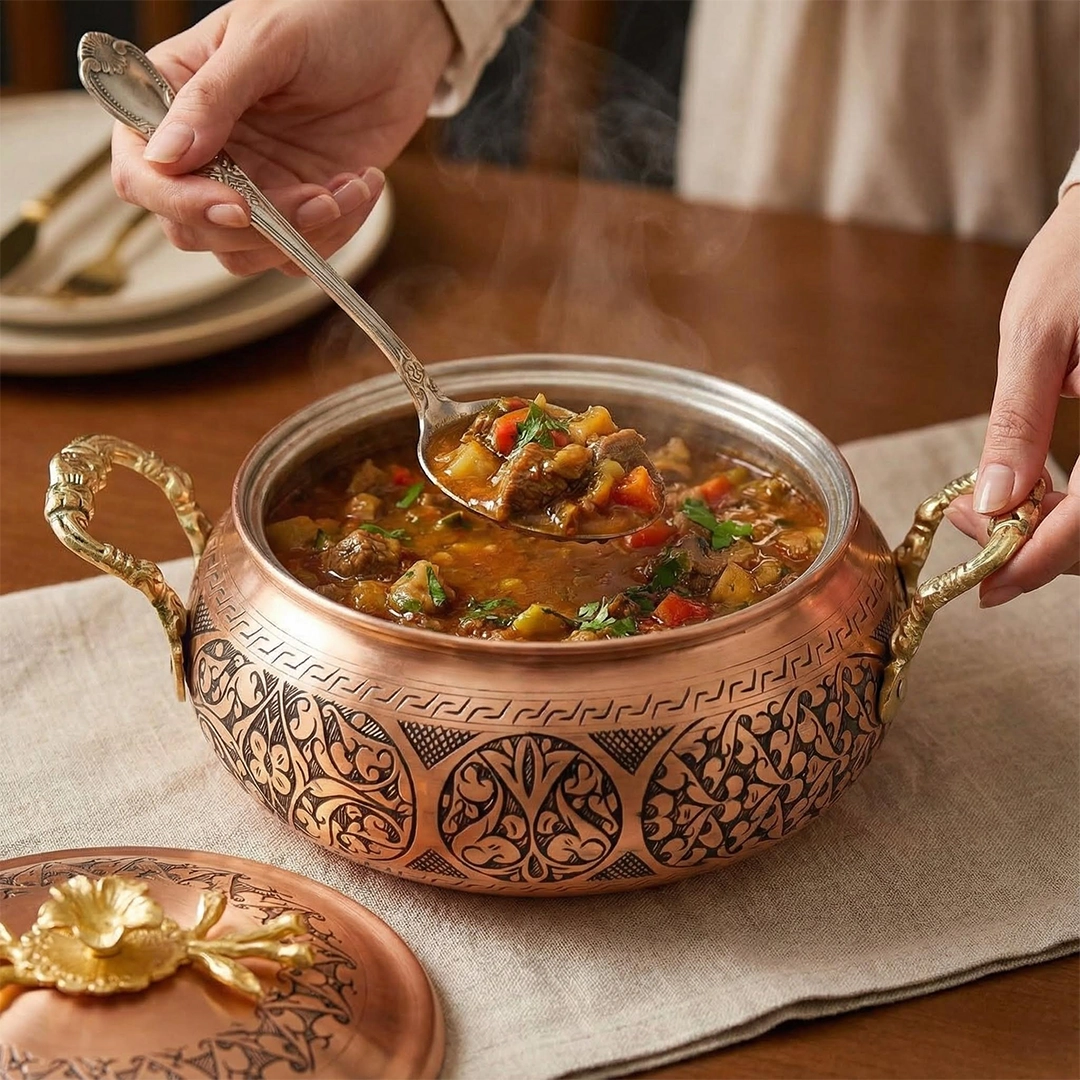 Sofraların Sanat Eseri: El İşlemesi Bakır Tencere