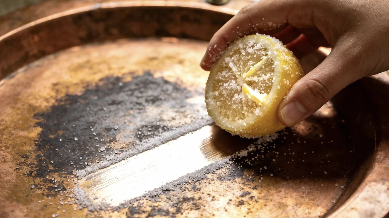 - Uygulama: Tuzlu limon ile bakır ürününüzün dış yüzeyini, sanki süngerle ovar gibi nazikçe ovalayın. Kararmaların saniyeler içinde kaybolduğunu ve alttan o muhteşem rengin çıktığını göreceksiniz.