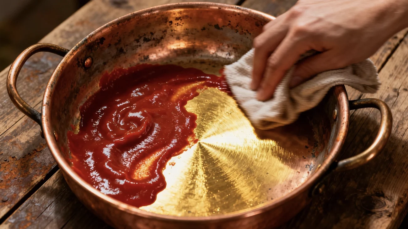 - Nasıl Yapılır? Bakır ürününüzün üzerine ince bir tabaka ketçap sürün.